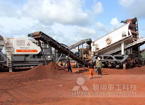 工程師為客戶配置了YG1349EW8、Y3S2160HP220 (EC)移動站。當(dāng)大塊石料進(jìn)入料倉后,通過GZD1300×4900振動給料機(jī)進(jìn)入PEW860歐版顎破初次破碎,后由皮帶輸送機(jī)將石料送入HPT300液壓圓錐破中碎,破碎后的石料被皮帶機(jī)運(yùn)到3YZS2160振動篩進(jìn)行篩分,篩分出成品料。
